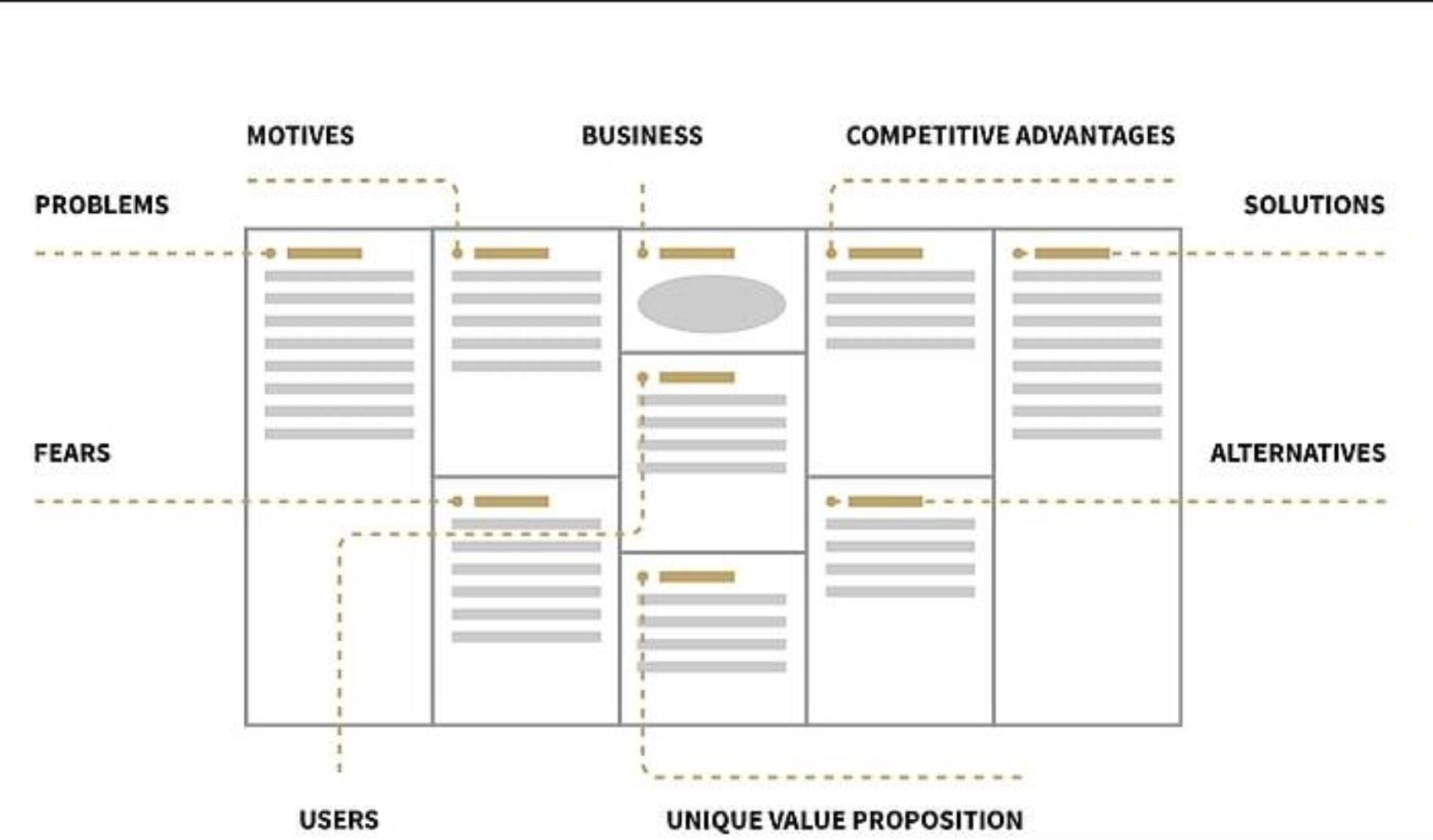 - Unique Value Proposition – 1 zin die omschrijft welke belofte de organisatie aan z’n gebruikers doet, als samenvatting van de toekomstige bedrijfsfilosofie met betrekking tot een goede gebruikerservaring.